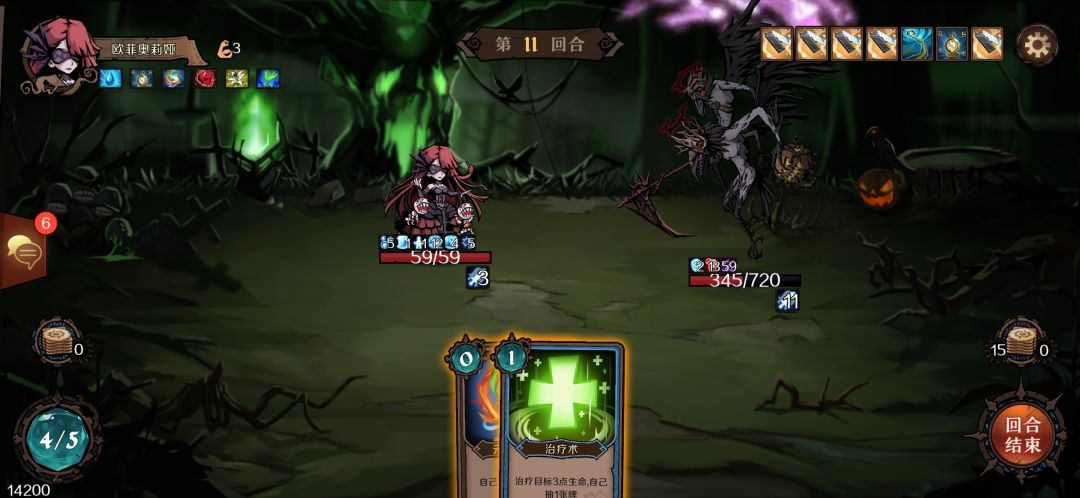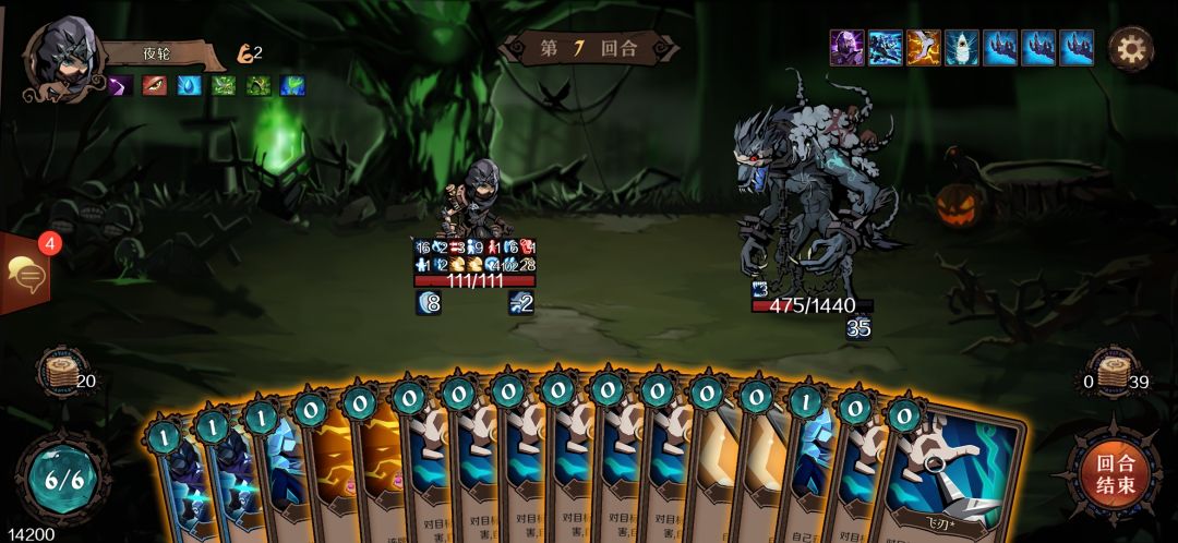 上面那张图。我使用了两张寒冰护盾,且能量还提升了一点。每回合需要使用一次毒针来消耗boss血量。算下来还剩4点能量,也只能每回合增加48点护盾。boss照样能一刀破盾把我砍至23滴血。所以还得获得紫罗兰套装加上元素循环+回复满生命。
