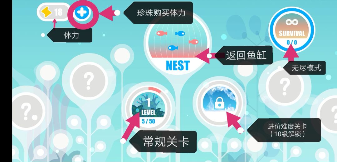 更正一下经验条其实是收集进度条,重复的不增加进度,只有第一次抓到会算。5/50是收集度。LV1代表1级就可以开始进图抓鱼。