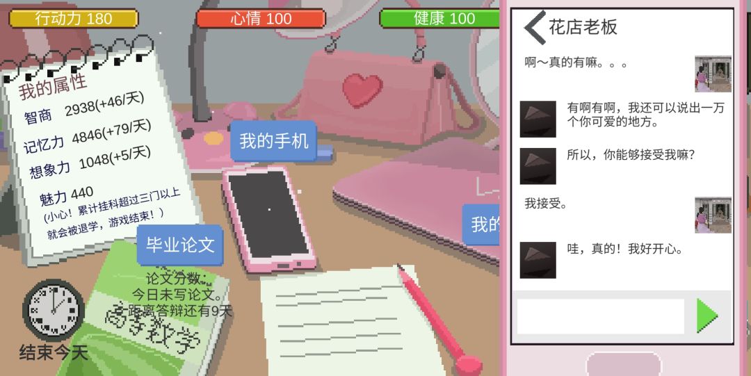 阿成和花店老板都来表白了,都可以选答应。我的妈呀!!!但最后显示是和阿成是情侣。