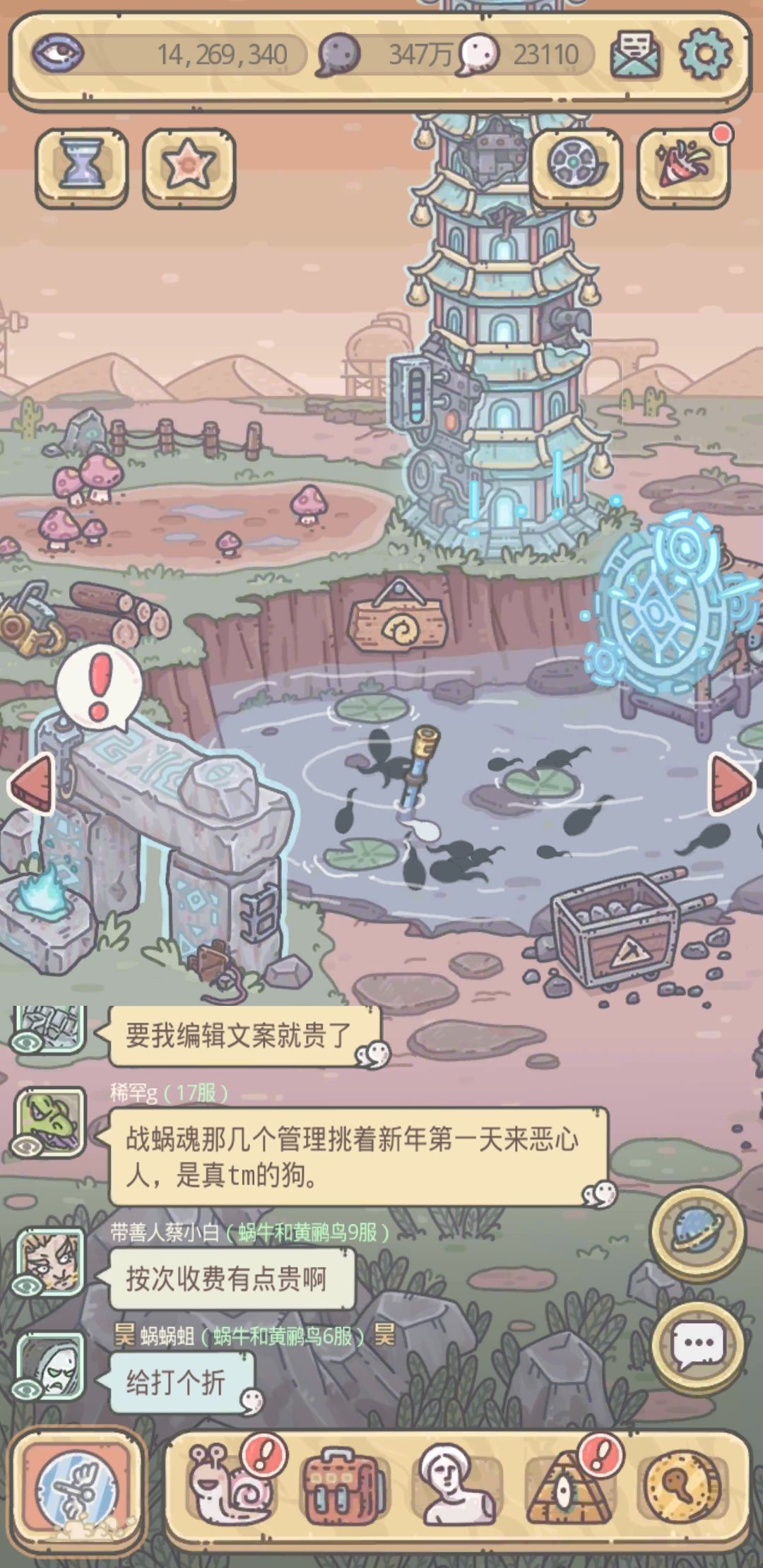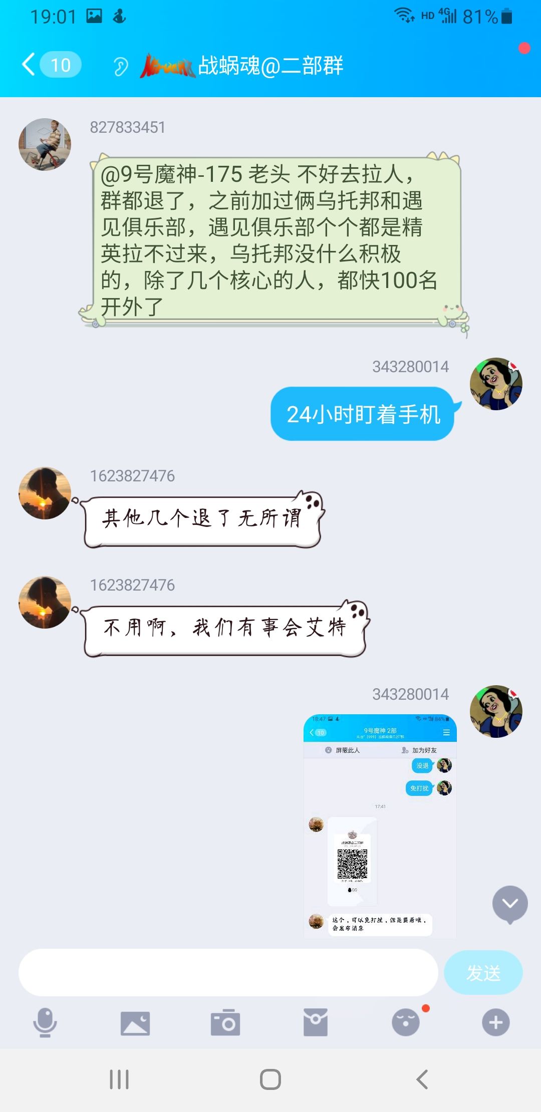 这个就是经过,本来开服就在当单机来玩,因为上周自己的咸鱼工会突然能打物种发现有好处拿就打算加入一个能正经打物种的工会傍晚加的然后晚饭后打算领下探索的挂机,家里突然来了送礼的客人就把手机放一边招待了一下大约一个来小时,手机就放一边了也没看。客人走了就发生了这种情况我知道一般游戏加工会都会有群啥的但是谁能想到加了一个群还要加什么2群,而且我还是转服务器从公测那个第一服务器转到这个什么蜗牛黄鹂鸟17服务器本来抱着和大家多交流好好玩的心态,结果弄了这么一出大过年的心里还听不得劲的。如果是自己服务器太咸鱼踢了也就踢了,我去群里问问结果也被咄咄逼人,唉早知道这样还不如自己默默玩呢。