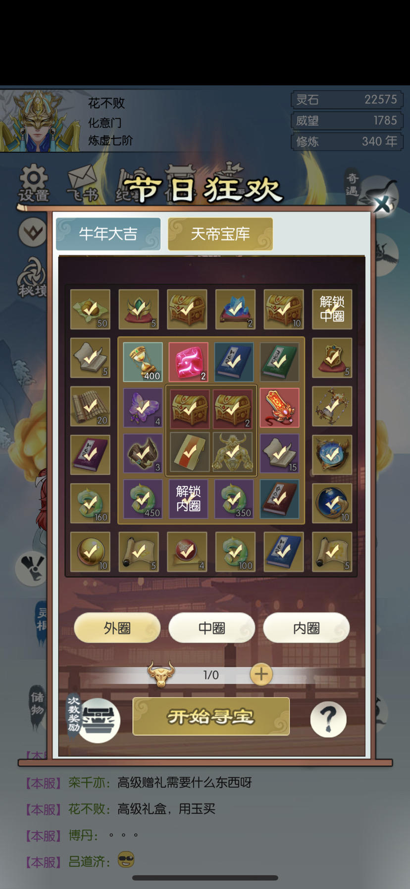 那啥吧,我刚开新区,天帝宝库就出了,那我作为一个有经验的老玩家,想都不想就入坑了,结果呢,进了内圈就被吓住了,21牛子币,折扣算下来要1520玉抽一次,我又是非洲人,抽四次才出,导致我冲榜的预算都有点不够,唯一让我有点安慰的就是顶神了另外问下大家点化石和神玉有必要选吗.其实如果内圈是11牛子币一次的话我肯定大家都不会说啥,毕竟你们又把神器自选概率条这么低,不是转个三四次都不会出,那也就是说花600多r买道侣加神丹加神器自选再加个可有可无的玩意,这么算下来似乎跟双旦差不多,可是中外圈花的是有些多了吧一轮下来一个宝库要1000多r,恕我直言,有大多数玩家都不会接受,也许在你们策划看来这次活动跟双旦差不多,只不过是加了点副赠品罢了,可是大多数会参加活动的都是老玩家,他们只在乎这些东西对他们的价值值多少,值不值他们的付出,一轮下来,tap上面骂声一片,为什么,因为这次活动没有给微氪玩家带来实际性好处,当活动变成了抽奖性质时,这时候最亏的就是微氪党,他无法在有限的预算里拿到他想要的东西,所以他觉得不值,会很寒心,因为他会觉得我双旦花了400多拿到了神器自选和神丹,这次我还花400多,却只拿到一些毫无意义的东西呢,所以我在这里呼吁官方以后尽量少做抽奖轮盘活动,大多数玩家都会觉得不值。下面附上我自己抽的图一张
