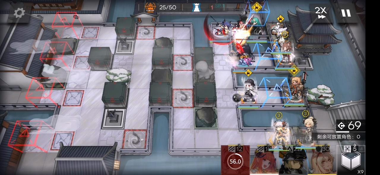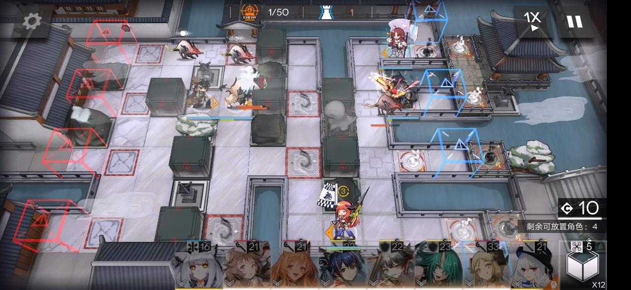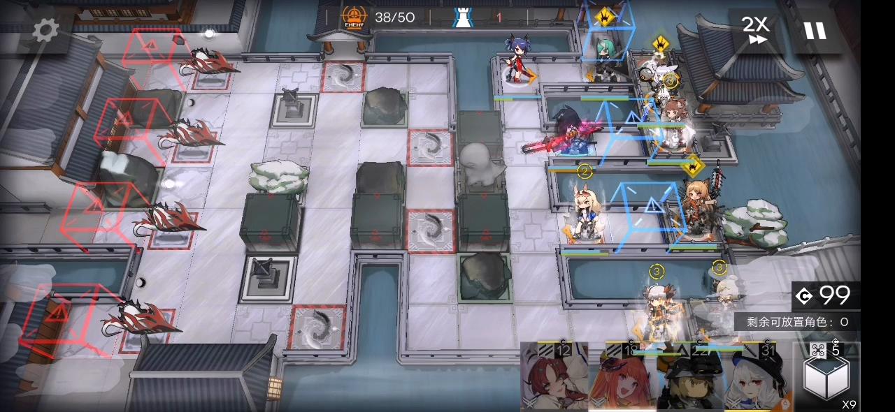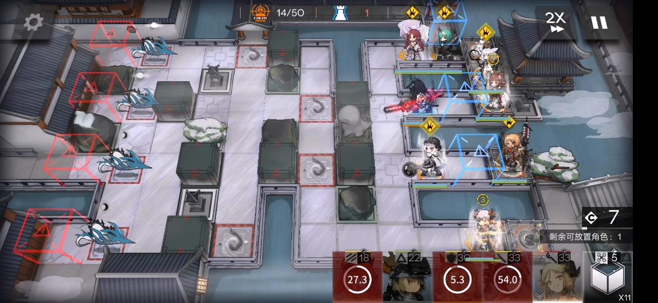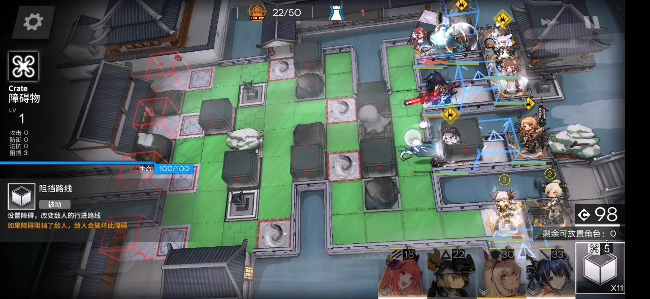 这个思路的关键就是突袭中间自带的箱子无法撤回,但可以被敌人破坏,只要用小力度的不管是谁把敌人推到中间的箱子上,你就可以赢了,下面是三波敌人的箱子摆法