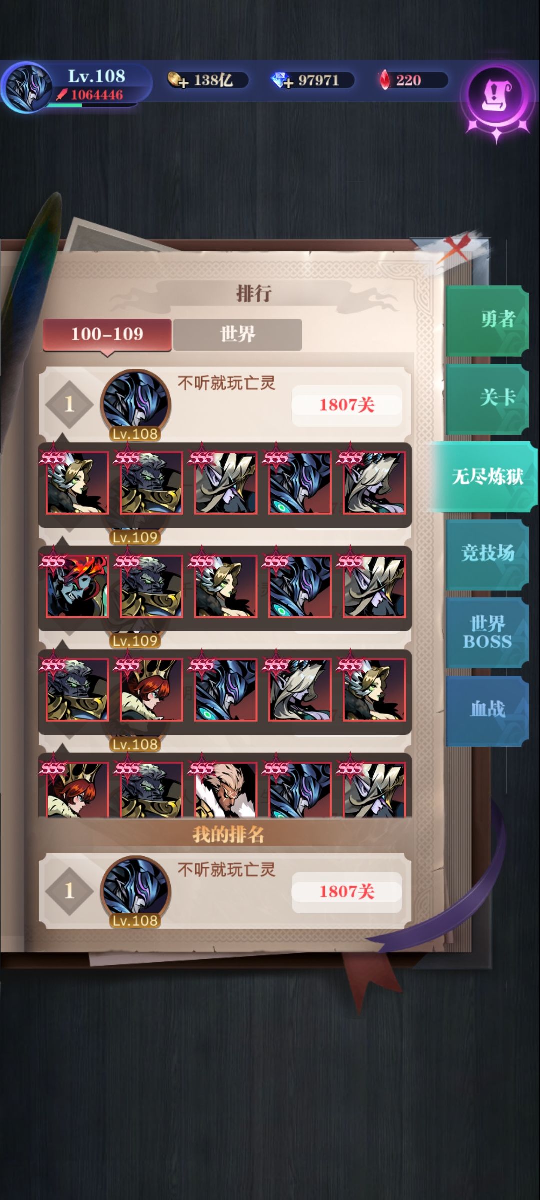 1我从100级看不到名次至108级,排行榜刷了许多遍前几一直维持亡灵。