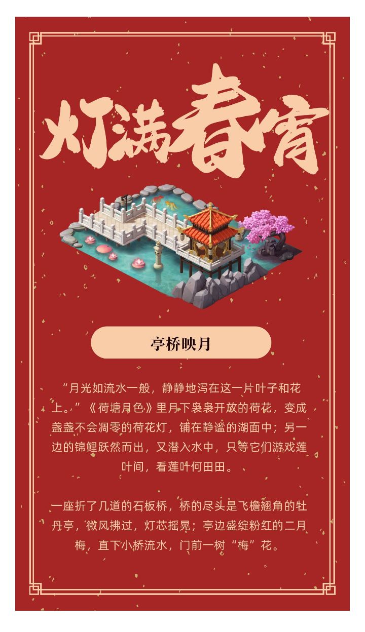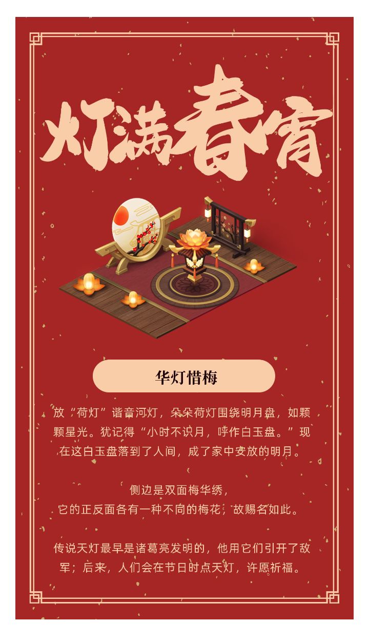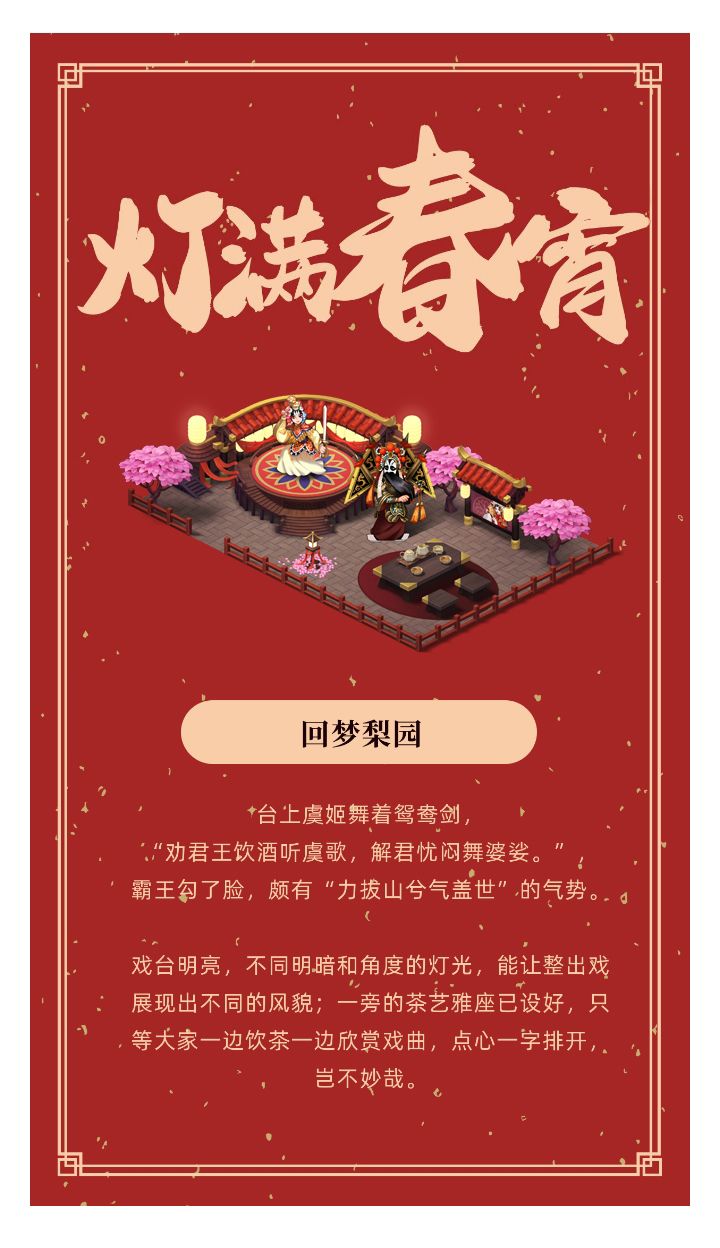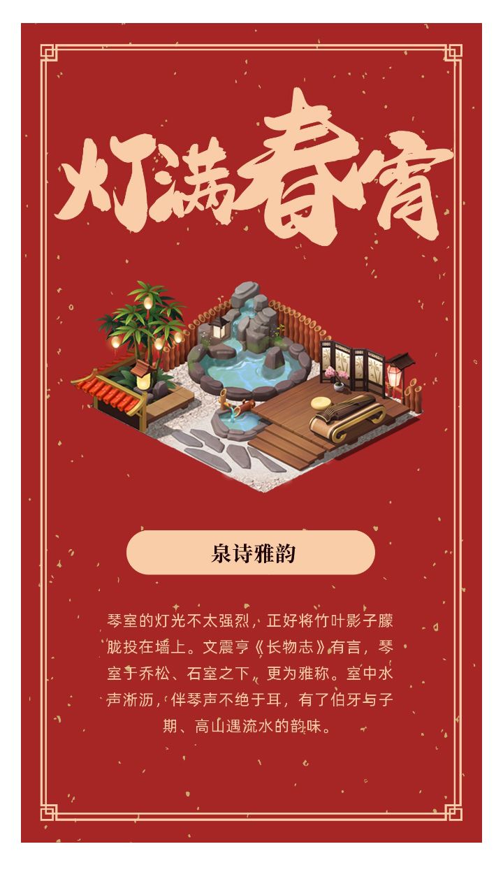 收集新皮肤「灯满春宵」的活动现已上线,足不出户就能喝茶、弹琴、听戏曲,安排起来!活动一直持续到2月28日,一起闯关收集金灯笼,打造你的国风家园~