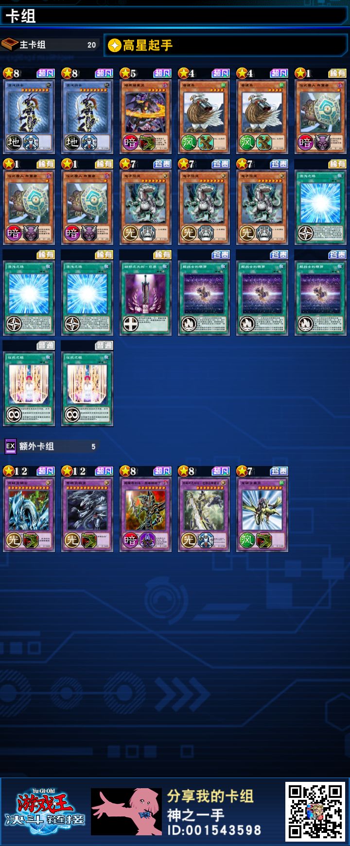 这套卡组主要是娱乐卡组(图一),比较针对一些阴间卡组之类,基本上一二回合,就能出无视陷阱的混沌士兵来压制场上,主要打法就是用混沌力场和鸟拉混沌士兵和仪式召唤(图六七),拉出无视陷阱的混沌士兵再加上仪式之槛和破鞋大剑所带来的无视怪兽效果来打暴阴间卡组(图345),运气好的话(图二)一回合三怪还能剩张牌,依靠仪式之槛也能打打亚马逊这种(图五)。技能的话,随便带个人比较推荐抽卡风抽卡地之类的,你要是相信自己与卡组的羁绊最好带抽卡魔法陷阱,这个最好用想要什么来什么