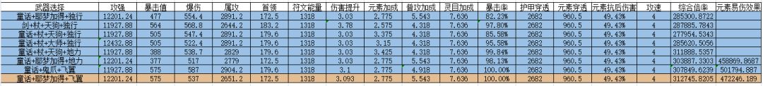 (综合倍率中已经考虑了主手武器的武器伤害影响,而元素易伤是自己的鬼爪全中的情况的伤害)