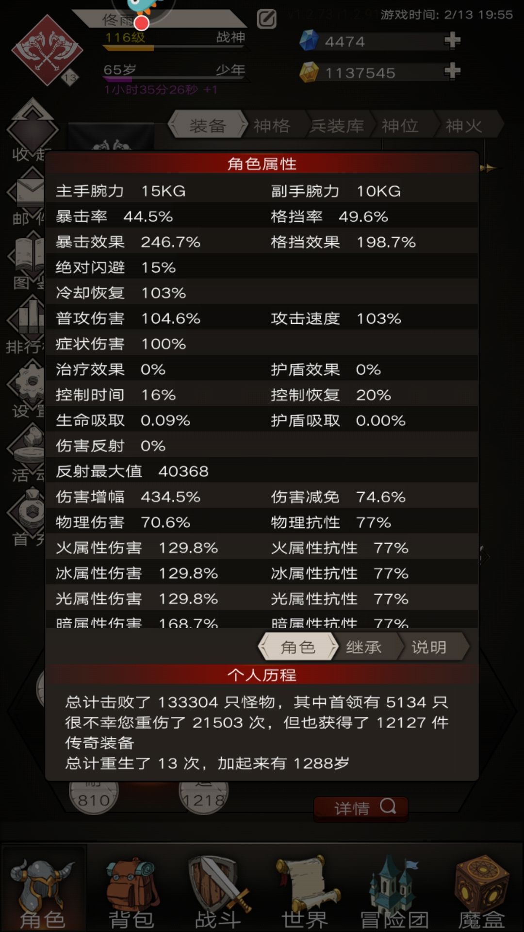 想必大家都看到了,格挡大幅虚弱,影兽回血削弱,所以物尽的作用大幅降低。但是降低伤害可以大大的堆上去。于是我就换了一个思路,尽量堆免伤,受到伤害后用影兽回血酒回的过来了。毕竟回血是固定的,用物尽转成盾,只有五分之一不到。至于格挡和闪避的选择。我还是倾向格挡,因为神格的原因。虽然新版本格挡不好堆,但是战斗神格比幸运神格对影兽来说更有用。我的格挡暂时堆到50左右。用来刷战斗神格个辅助生存暂时够用了。当然,并不是完全的站的住,偶尔也会有突然死亡,但是很少,主要是攻击问题。