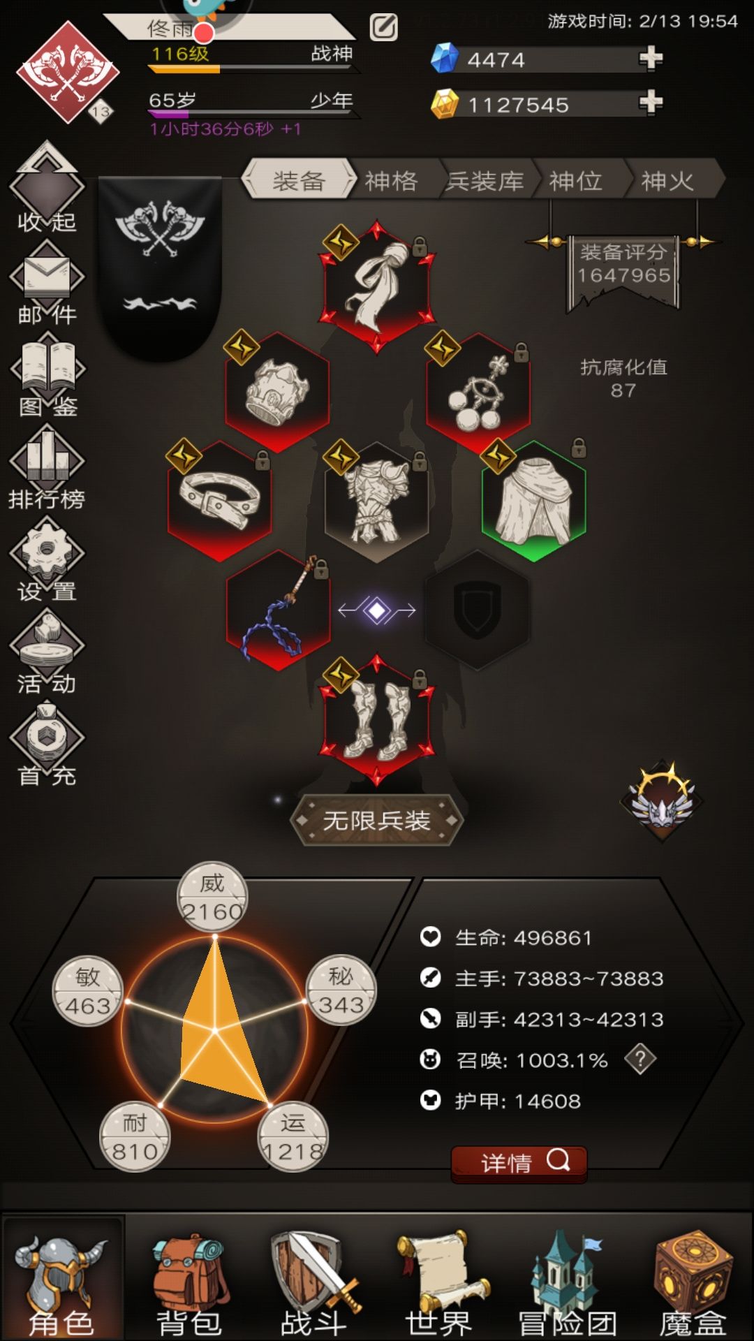 兵装基本还是那些东西,你堆闪避待幸运神格就把格挡换闪避。你的法术抗性不够就选法术,自己调整。