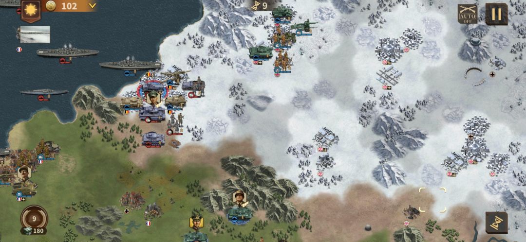 如上,攻占该城市后,地图会开放另一半部分,龙德施泰特、古德里安和海因里希会作为火星兵空降,迅速占领友军城市。我们先解决龙帅。解决龙帅后,古德里安大概已经移动到安特卫普附近,要迅速追击,不然安特卫普大概率失守,如下图: