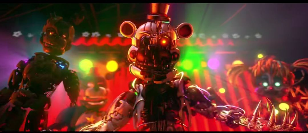 在游戏预告片中,我们可以发现电影院,厨房,餐厅这些场景,这些场景都干净而宽敞,在大厅门口,还有一个金光闪闪的摇滚弗莱迪雕像,至于人物,我们大致可以知道以下几个:魅惑摇滚弗莱迪,魅惑摇滚鳄鱼,魅惑摇滚狼,魅惑摇滚奇卡,以及一个以兔子为原型的布偶,叫做凡妮,红彤彤的眼睛再加一把小刀。除此之外,预告片中还闪出了只有短短数秒的两个新人物,这两个家伙长得像大致相同,只是配色不同,他们的头有一点像一朵向日葵,整体上看起来像个小丑,这两个家伙的名字暂且叫做“太阳脸和月亮脸”。至于这两个新角色,鳄鱼、狼,我还不知道他们叫什么名字。