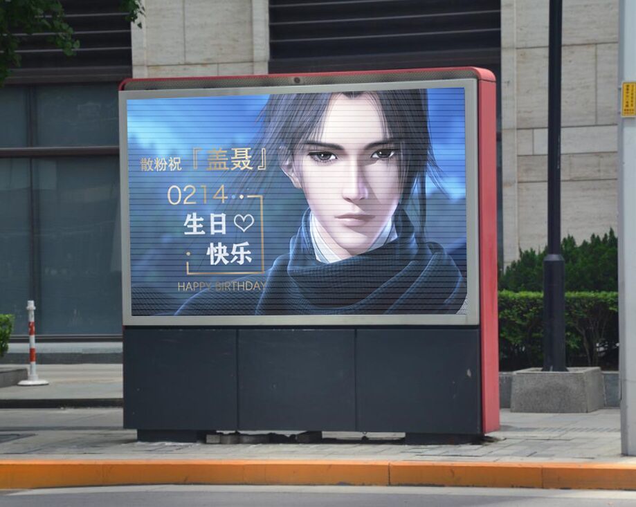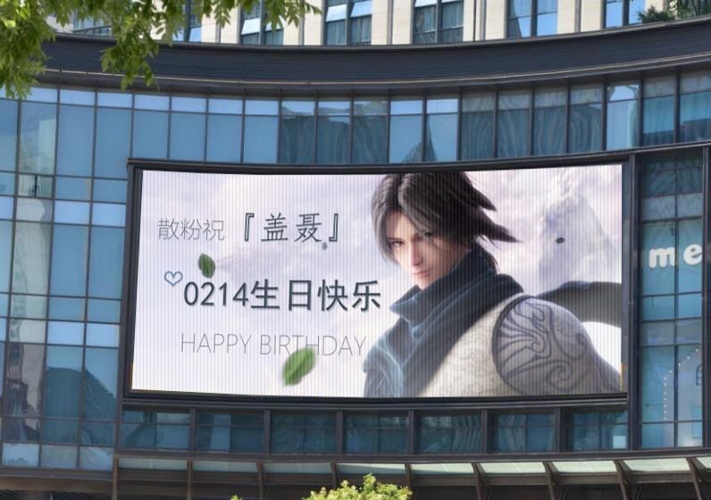 为了庆祝盖聂2.14生日,粉丝在北京,重庆等全国多地组织了大屏应援,并同时点亮南北两地灯光秀,为盖聂的生日强势应援!