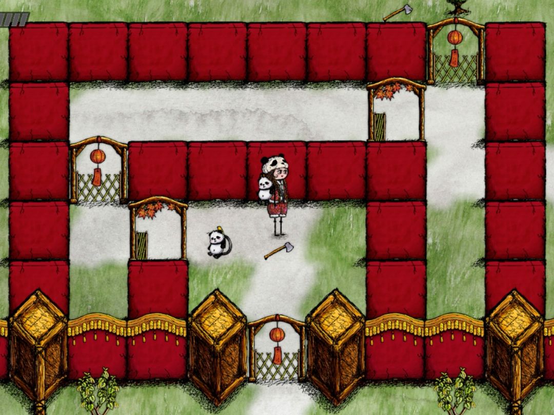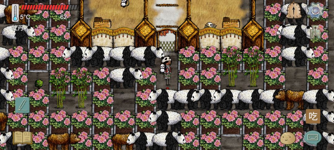 牡丹花围成的迷宫里塞满了熊猫和熊,趁着熊不在的时候火速在熊猫的掩护下冲过去。大体方向是向右然后下然后左,路上小心被熊咬,可疼。