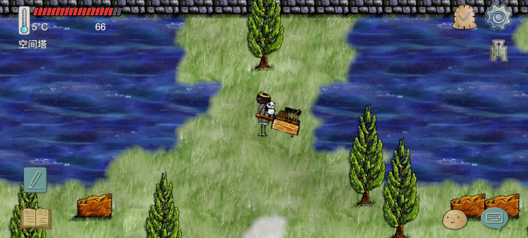 一个包里只能装3个小东西,我还想带点派走。补给站的门两边用的是松木柱子,嘿嘿嘿,一斧头砍下去……不愧是我,小熊背包和美味的派,我又来啦~~