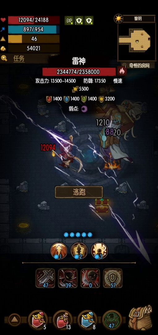 打法:①盾厚的:暗和木,盾 舍身 盾 舍身;光和水,一直开盾;火,盾 舍身 盾 舍身,盾破记得磕药;可以压血打暴击(我不敢)②盾薄的:除了火暗需要尽快击杀,其他时候都别开舍身,老老实实普攻补盾。