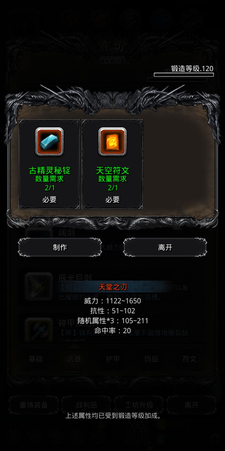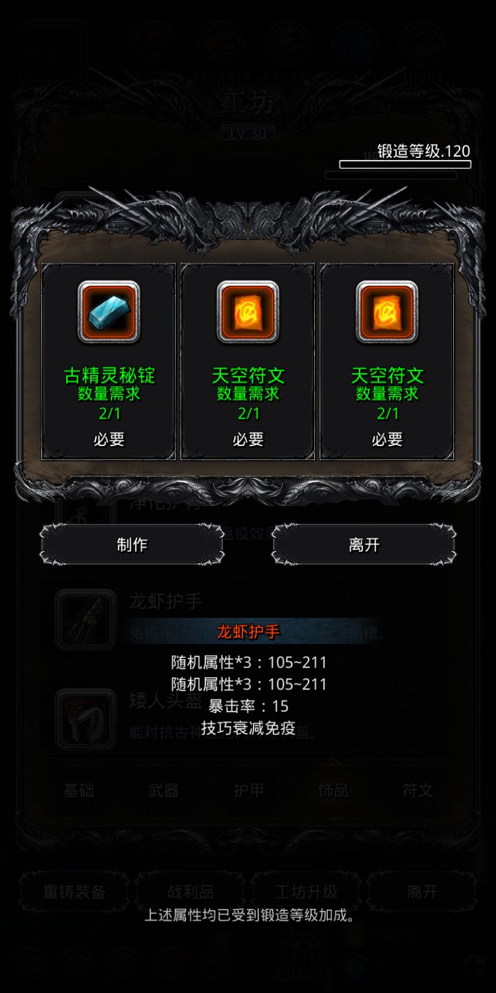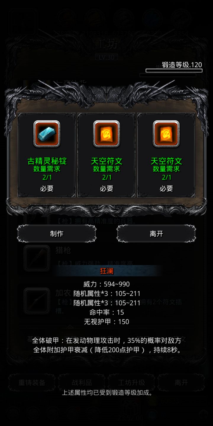 长剑 12命150无视和15异常,剑士的异常都有:破甲、眩晕、减力、减速、灼伤,在前期有浩劫的加持下这件装备基本没用。