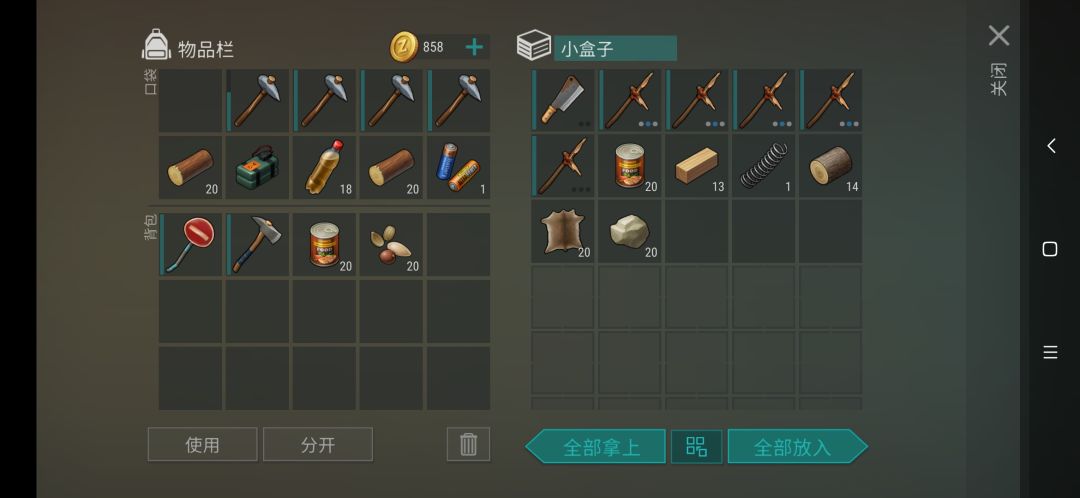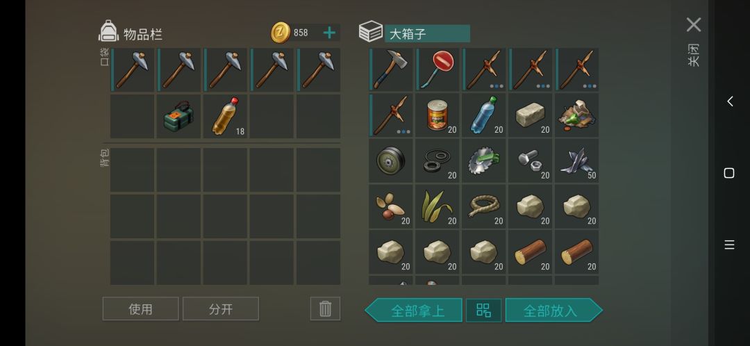 带两个炸,若干石斧,有地刺,皮卡没东西