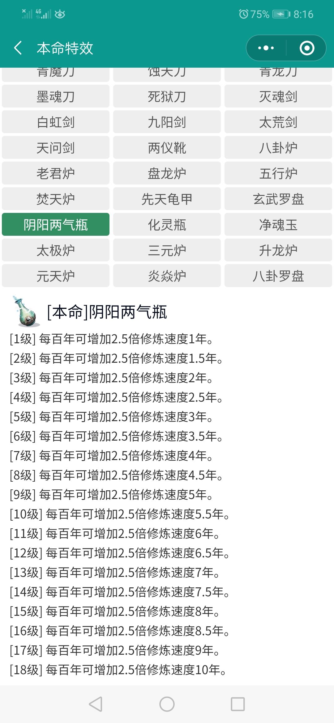这东西明里介绍每升一星加半年,实际上是加一年!十星就加速修炼十年!哈哈,我赚了……