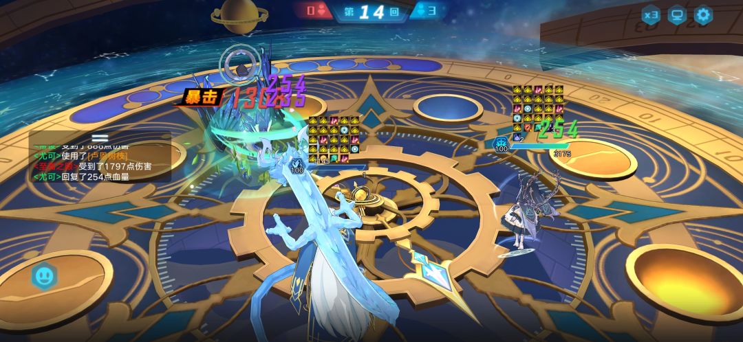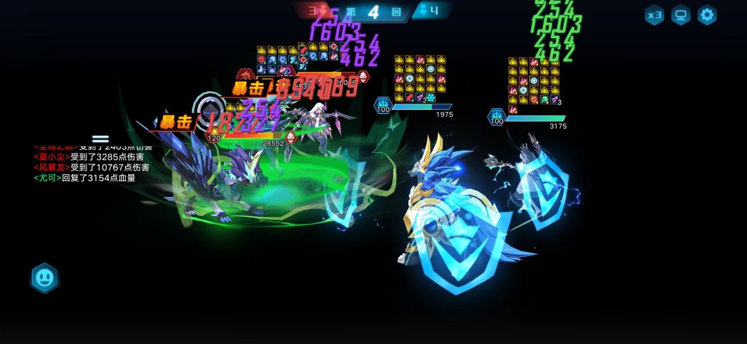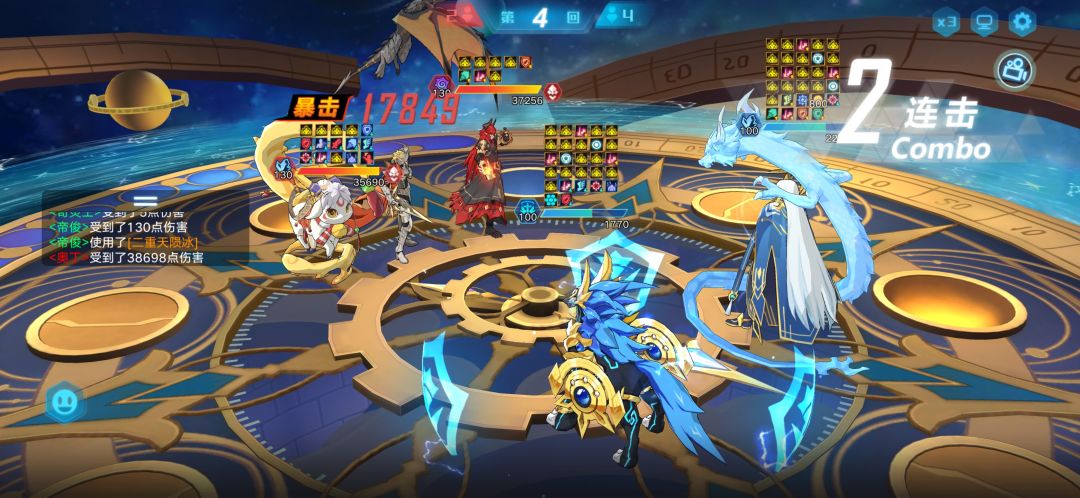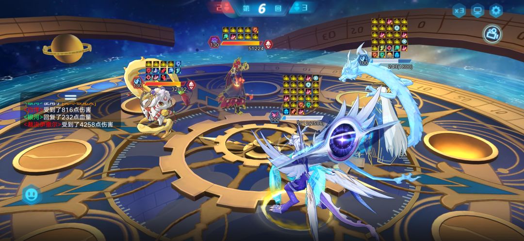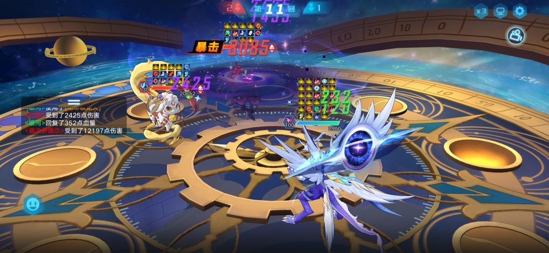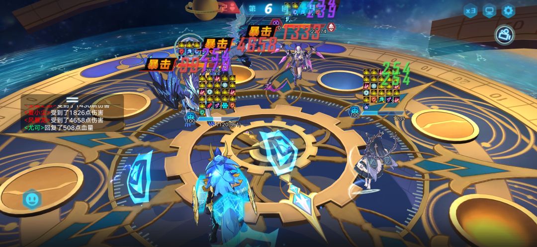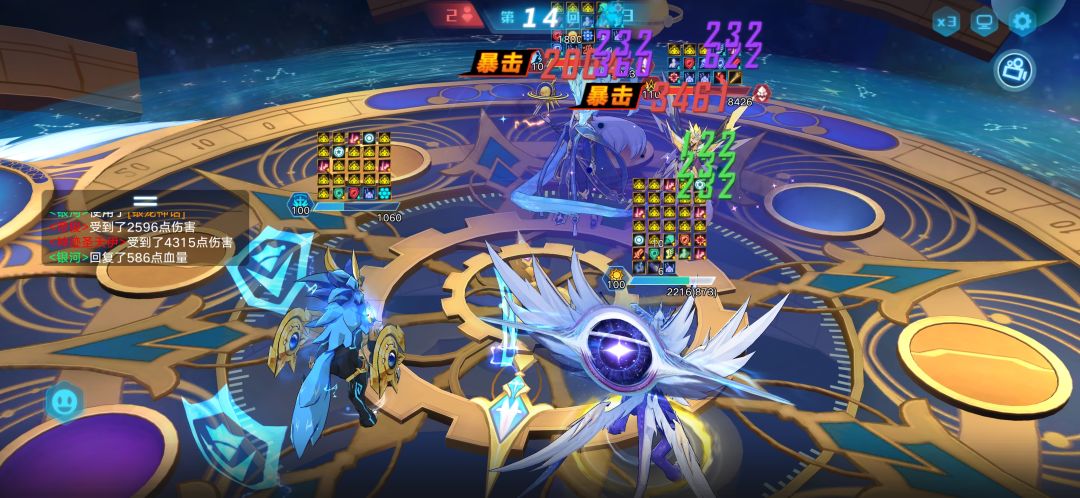 思路:这关主要的功臣是光银河,一开始上的风暴龙没顶住,后面基本靠银河打的,银河吃对面很多大都能顶得住,还是挺强的,能打能抗,一技能偶数回合群嘲也是强力之处,奇灵王也在旁边帮着降属