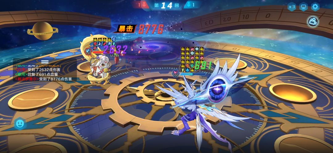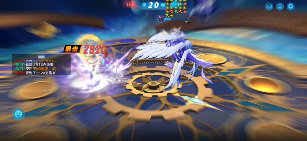 思路:我先用的奇灵王和帝俊,第四回合帝俊大奥丁,基本能秒掉,对面伤害都挺高的,奇灵王撑不住白泽一个大,换上妖精银河,妖精银河特点伤害高,技能产生效果免暴击,这就舒服了,可以看出来,帝俊没了后,上了零能天使,被伊撒尔一个大搞没了,然后妖精银河托起重任,她成功了,挺强的