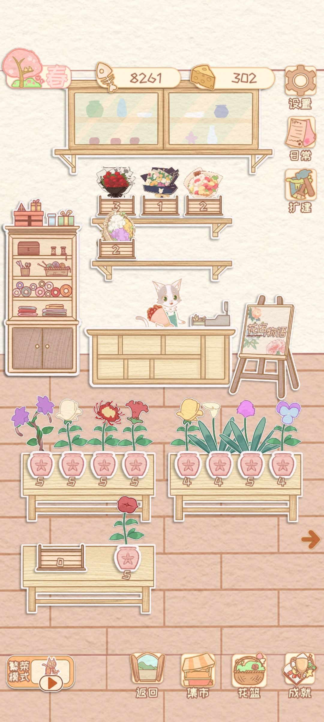 当上面的架子的花束位子放满了之后,再做不一样品种的花束,不会放到下面那个架子上,而是直接没了。。。