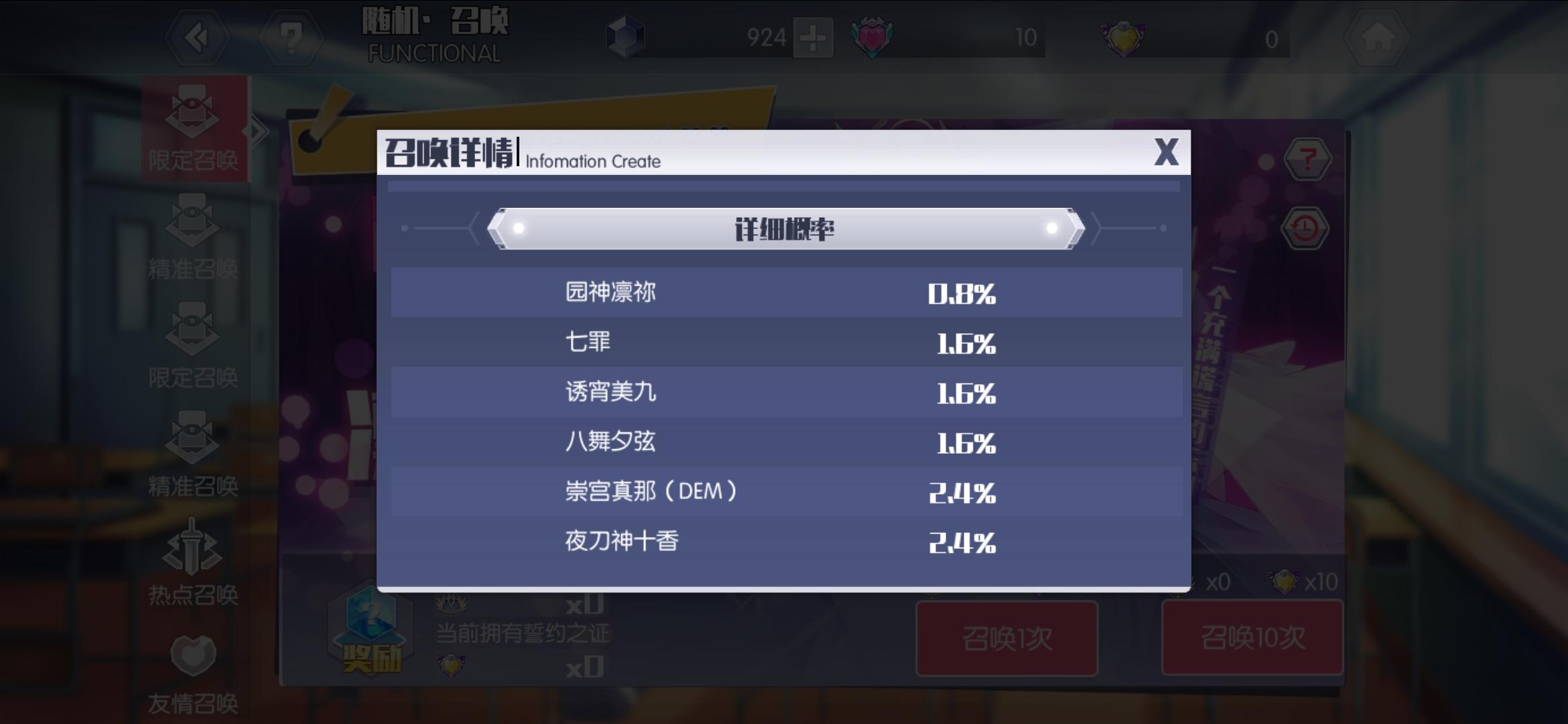 好家伙,500抽除保底才出了一个到现在还没ex,差100多碎片,你这0.8的概率请问在哪里,好歹我也是氪了近2000了你游也没必要这样吧,为了这次凛祢我直接砸了600多下去,问题是我还是基本全保底,你们策划要不直接把ss的概率0.8改为0不是更好?呵呵真tm让人恶心