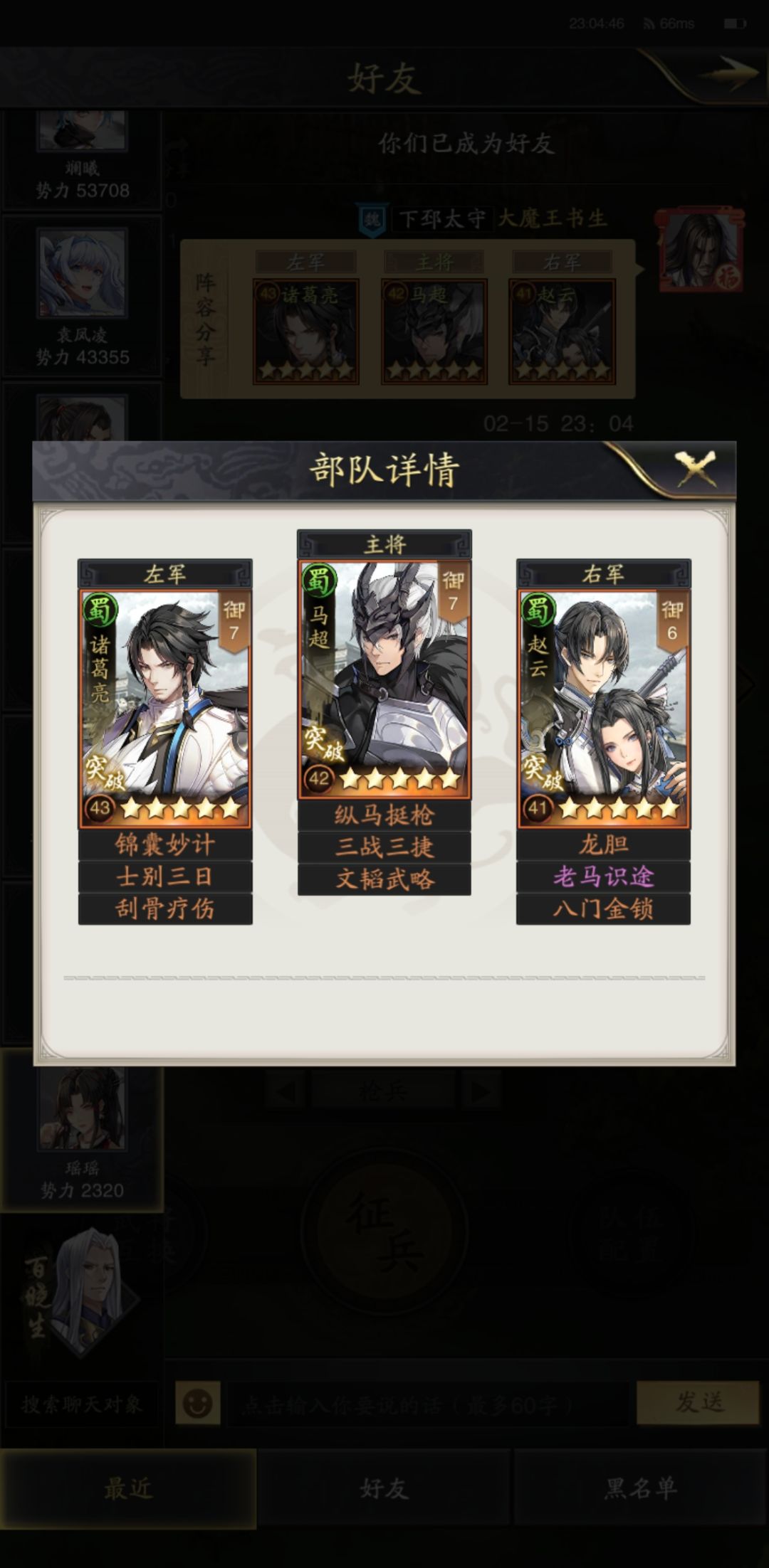 第二个可以说是s1天花板,蜀智,主诸葛,副法证 徐庶,遇到什么队都可以打,如果你有的话 比武大会,绝对前4下面说一下战法 诸葛亮 遁甲天书 士别三日 法证休生养息 刮骨疗毒 徐庶 决水淹域 避其锋芒。(徐庶的避其锋芒可以看情况换,也是有高效的)