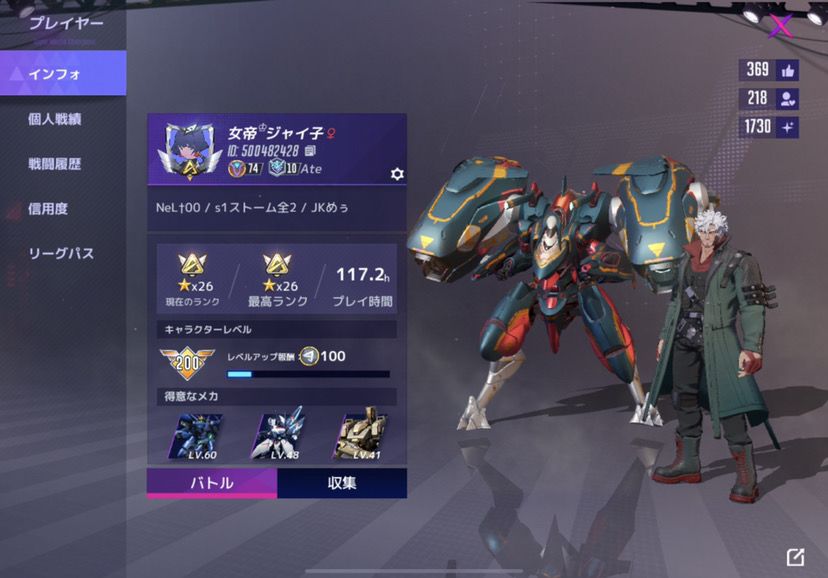 您好,我是日本的机动都市阿尔法(日本名:機動都市X)播放器。 在日本,此游戏于一年半前发布。 自从第一个赛季以来,我就一直在比赛。过去,我是《飓风》在日本排名第一的球员。
