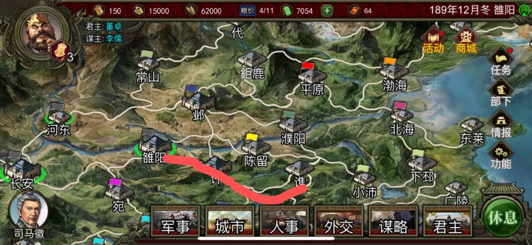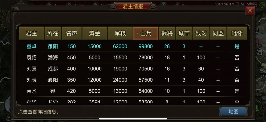 游戏机制有前6个月电脑不会打你也不会挖人(好像是),你需要在18个政令内整齐人马推到一方枭雄—(打曹操)