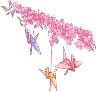 月牙弯弯、许愿千纸鹤、晚樱千念,樱花随风飘落,点缀其间,风经在窗边,这些美好就在眼前。