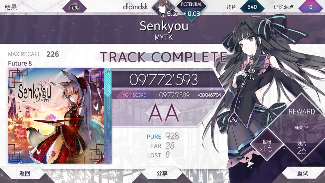 我就说为什么打下面这首歌都直接打到了96都没给我涨ptt,原来是被senkyou抢走了()