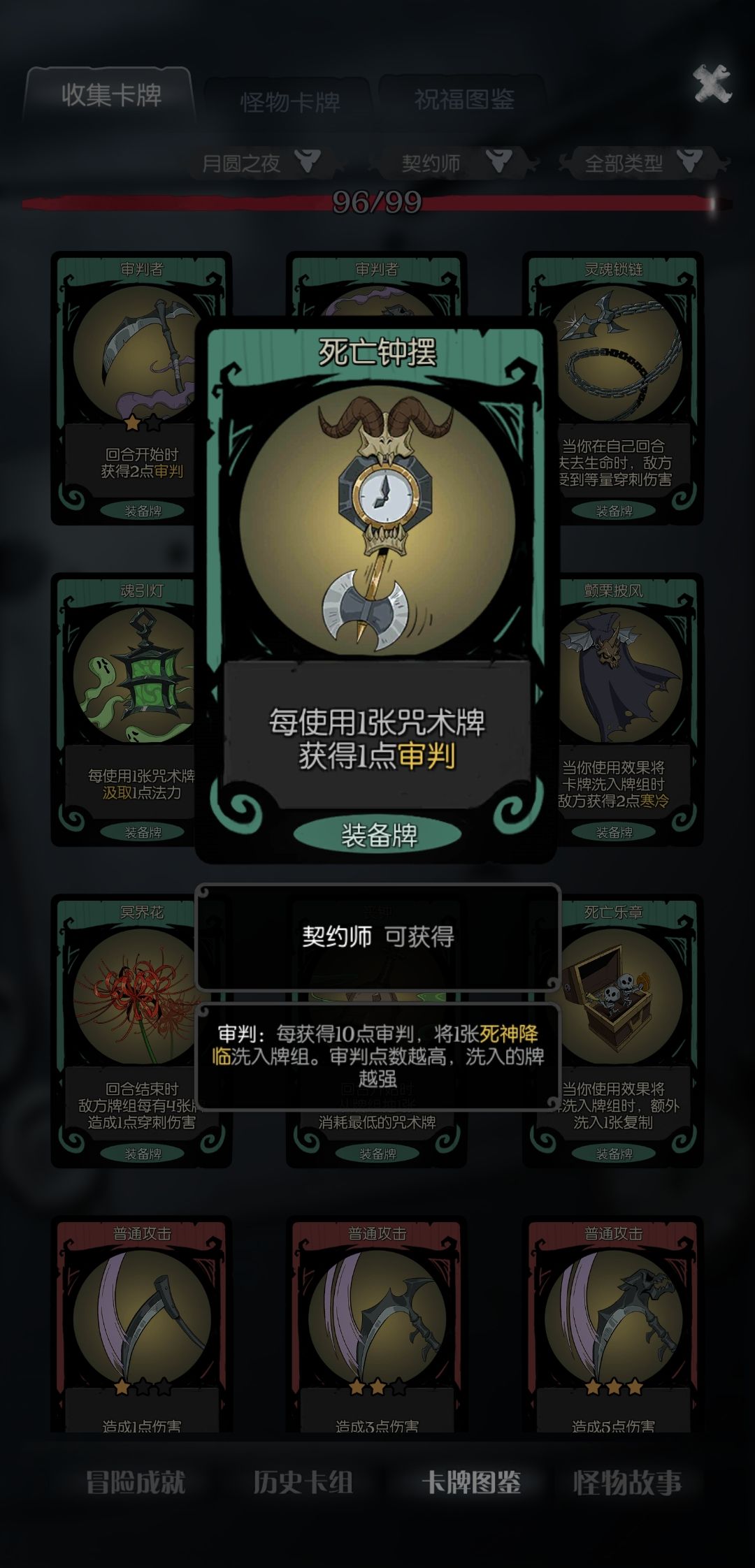 审判的来源有三个,分别是装备(镰刀,钟)、咒术中的审判卡(如瘟疫之审判)、祝福,想必各位挑战梦魇难度的大佬已经很了解了这里不过多赘述,直接展示出我推荐各位选取的牌。