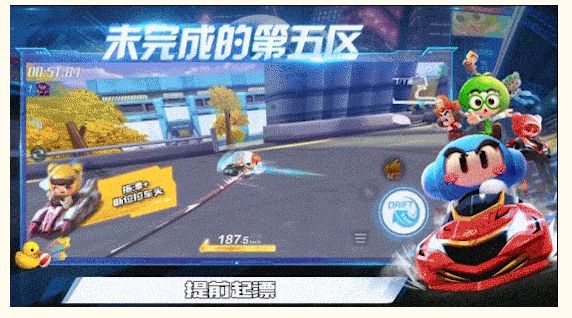 在近道前贴右侧行驶,在不开启氮气的情况下提前漂移,落地后使用断位拉车头技巧,快速调整车头方向,随后直角+U型弯道处使用拖漂、双甩的技巧快速通过。