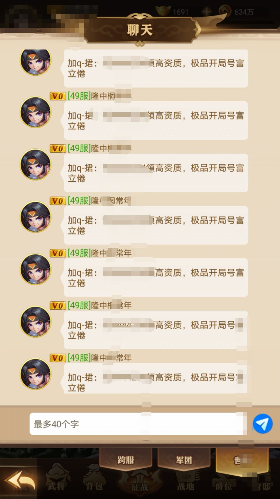 就这样的,刷了一堆,还不能拉黑举报,聊天频道你们是不要了吧?