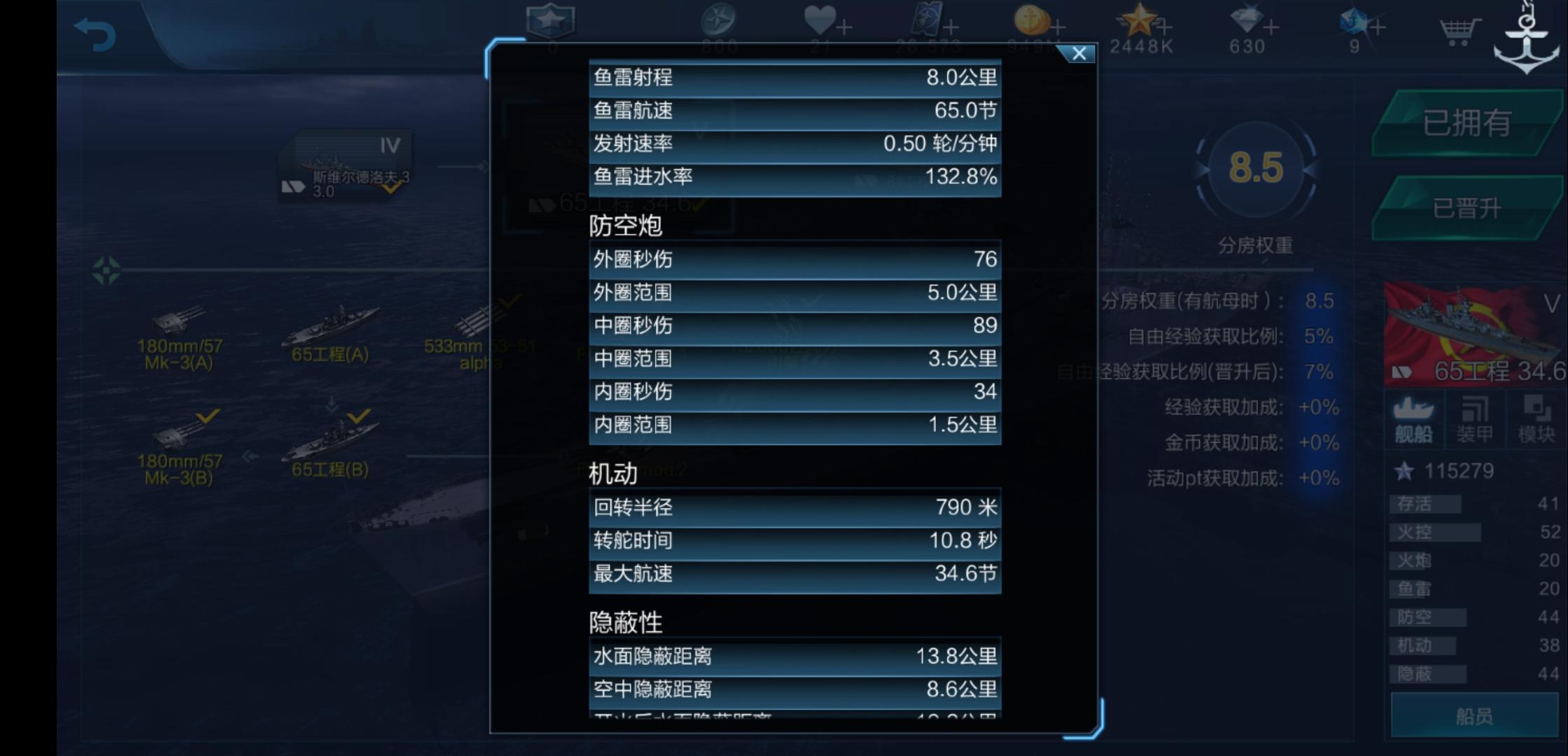 65工程升级船体后防空数值反而变低了???这是输数据的时候输反了吧