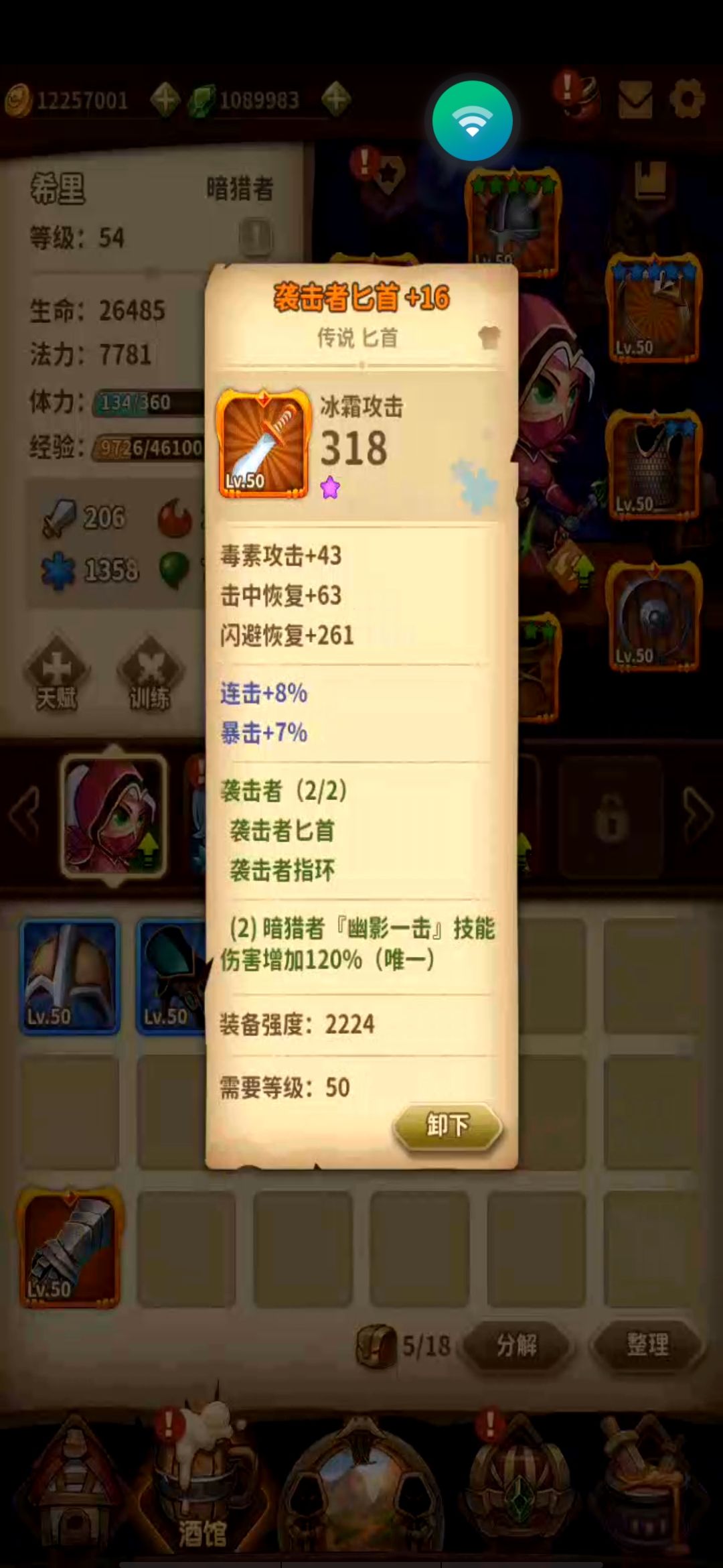 3.刺客,也很强,但比法师差点,特点是高连击(就是普攻快),这里说个小技巧,冰法刷完体力后,装备脱下来给她用继续刷(冰刺),与冰法比起来,输出少了一点,但生存能力更强一点。后期因为爬塔抗性的问题,走毒刺路线。
