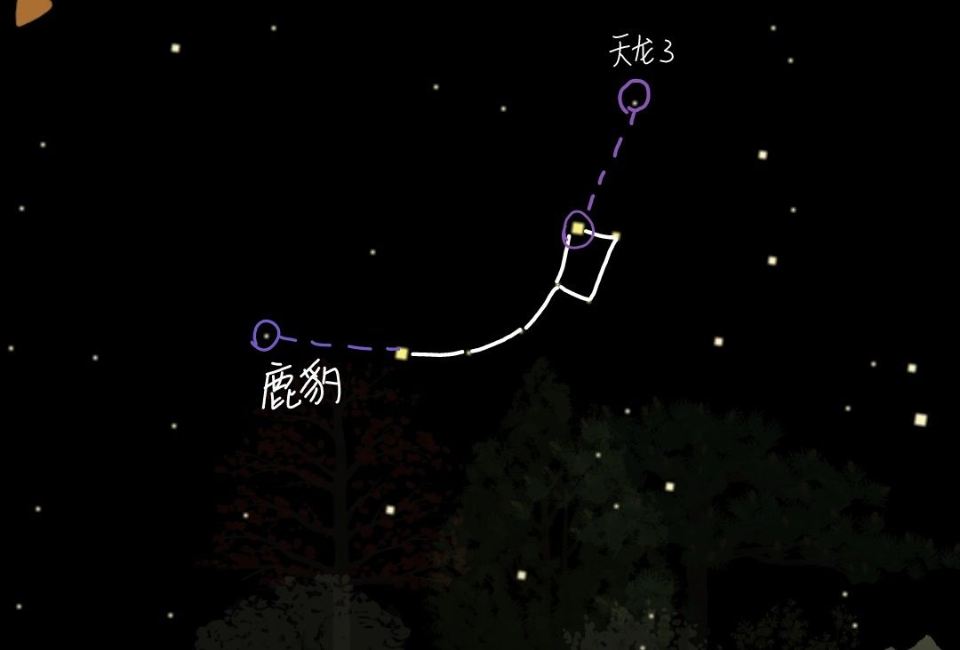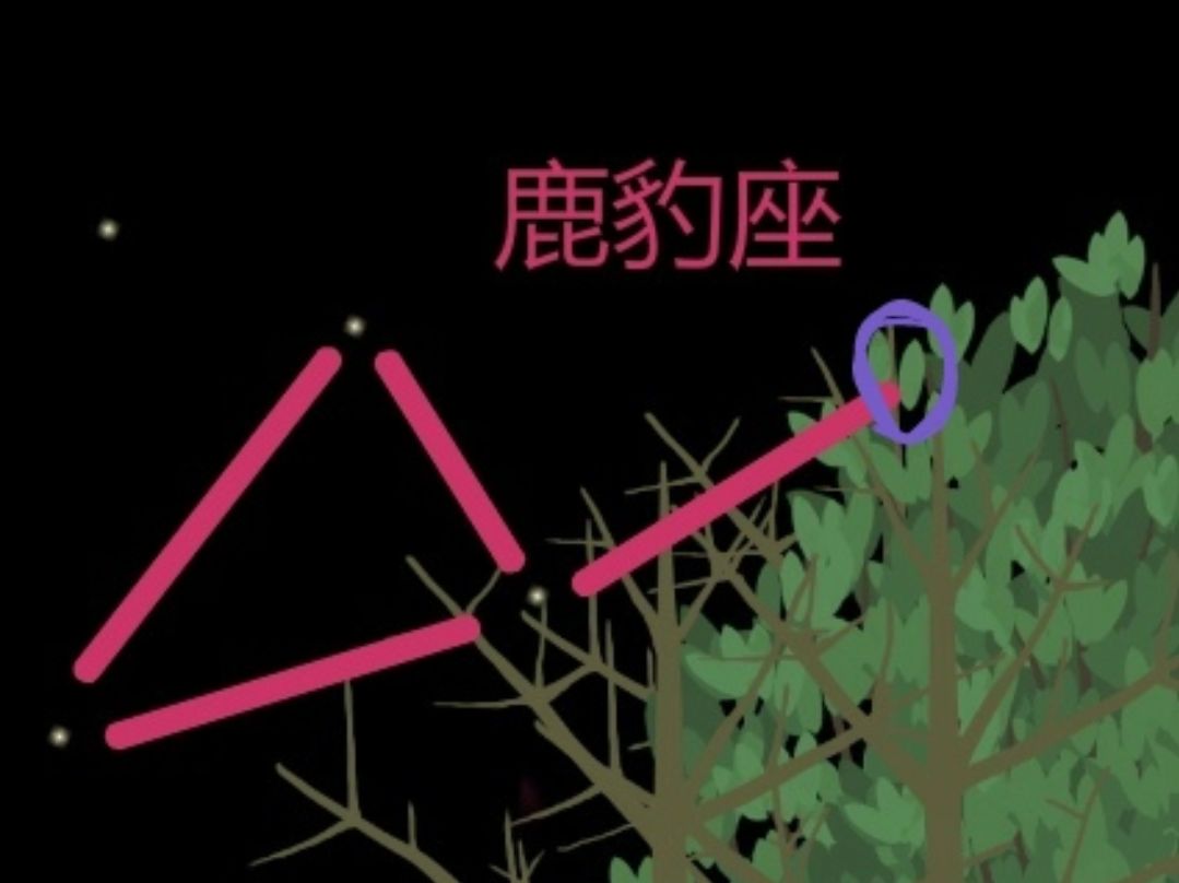 沿着勺柄反方向延伸的第一颗星星是鹿豹座最边上的星星,为什么说是最边上呢?鹿豹座是这样的: