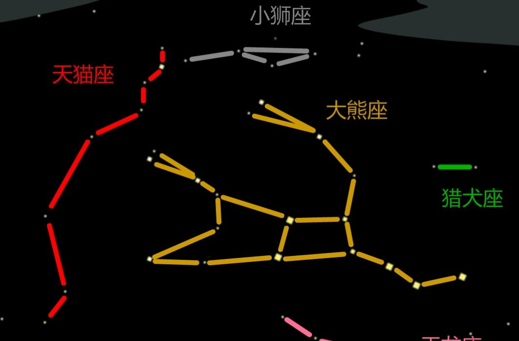 天猫、小狮和猎犬座(根据大熊座)