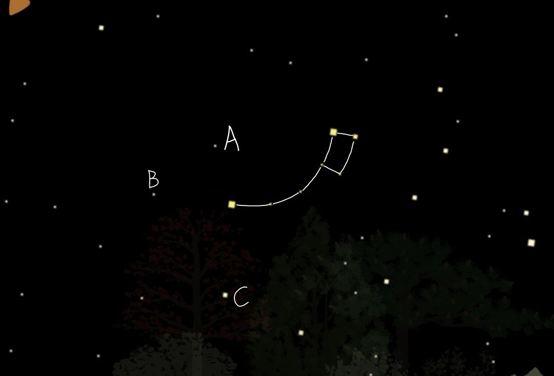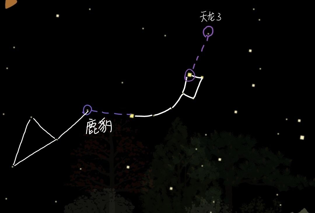 如果不能判断出A和C的区别,还有一个更为简单的判断方法:C是这三颗星中最亮的( ˙˘˙ ),找出C之后按照仙王座形状顺次连接即可。