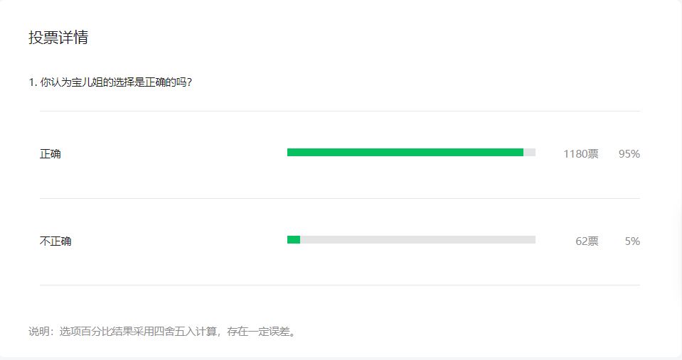 真的是好久没有出现这样一边倒的情况啦!不过这个问题,显然在本周的剧情中,也算是给出了答案。因为冯宝宝所做的事情,至少从现在来看,并没有对这个世界产生什么不好的影响。而那些受到伤害的人,都是自己主动入局的,其实与冯宝宝并没有太大的关系。而且张楚岚也表明了自己的态度,如果冯宝宝有一天变成了“坏人”,那么他也一样会站在冯宝宝的对立面,去阻止他!这样一来,不论从任何一个角度来看,冯宝宝和张楚岚所做的事情,都不能称之为“不正确”。王也道长的态度其实也代表了大多数小伙伴的态度,大家可以接受冯宝宝的选择。