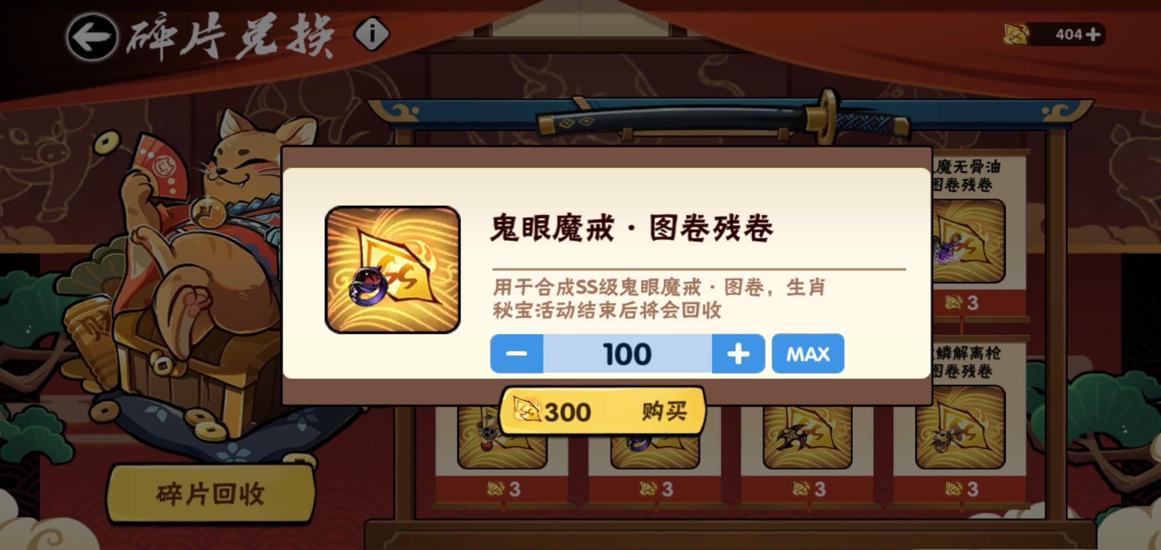 如图,点了Max只能换100个碎片,如果我要换鬼戒,意思是我自己得打出200碎片才能合成啊