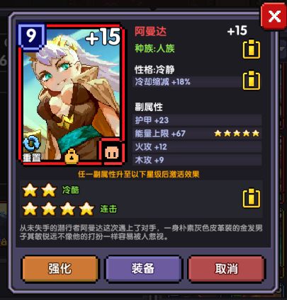 激活四星后,对克制怪造成的伤害提升10%,版本神卡,柱子选手必备。