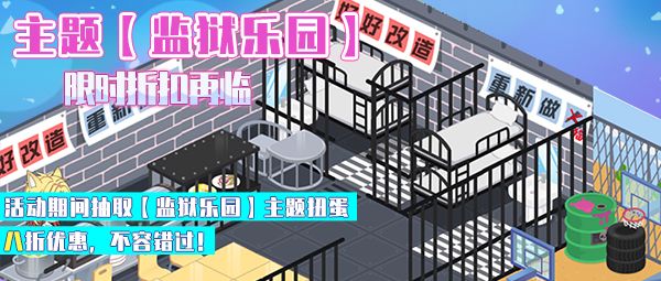 活动期间主题扭蛋【监狱乐园】八折优惠,不容错过。