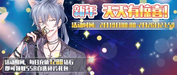 活动期间每日充值1280钻石以上,即可领取SSR自选碎片礼包。