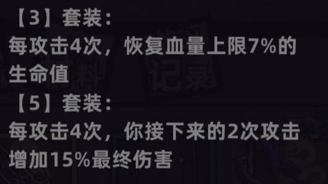 ①3件套不如3件远古散装收益大,举个例子:即使你4k攻击也就+1.2k攻击,而一件血战旧衣就可以720攻击,更别说还有别的装备加成。