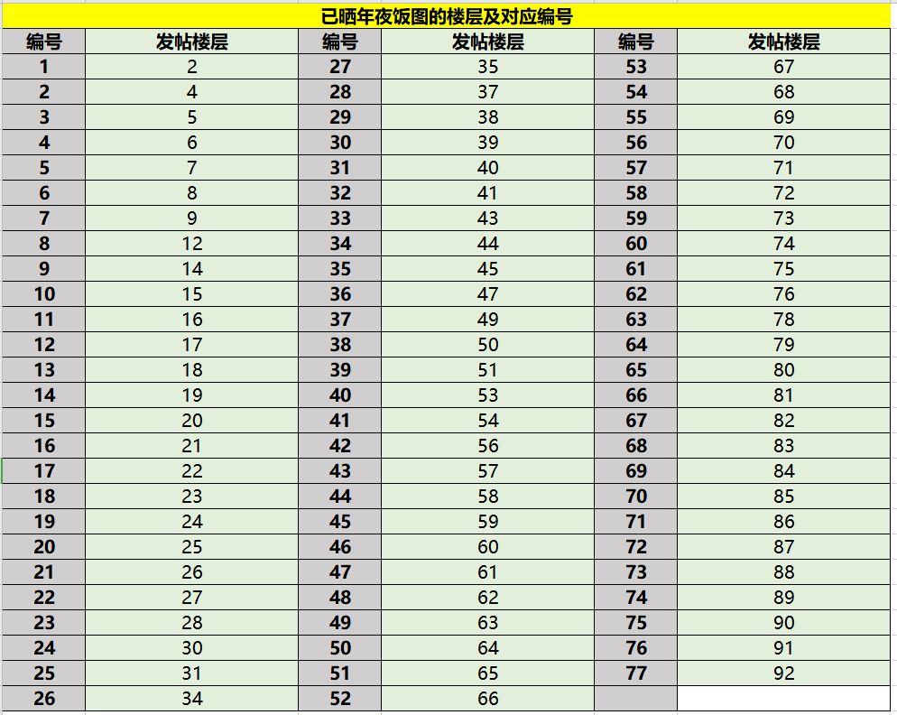 晒图玩家:有效77张图,楼层对应的抽奖编号如下(该编号仅用于“二、仅限晒图片的玩家”抽奖)