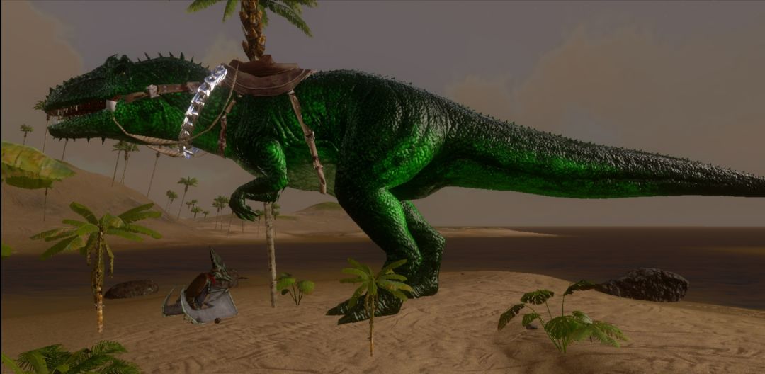 骑着南巨咬泰坦,加上望远镜bug(骑乘恐龙时,攻击的同时,点开望远镜,可以造成多倍伤害),几口就快把泰坦咬死了。