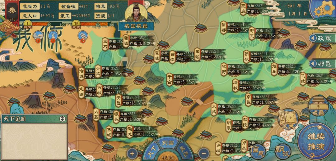 我们的开局现状就: 入不敷出,旁边还有一个魏国虎视眈眈