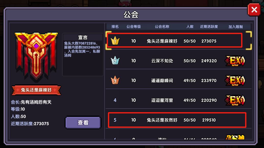 因为过完年有一波退坑潮,发帖收一波人,兔头四个公会都收,新人也有新人公会。