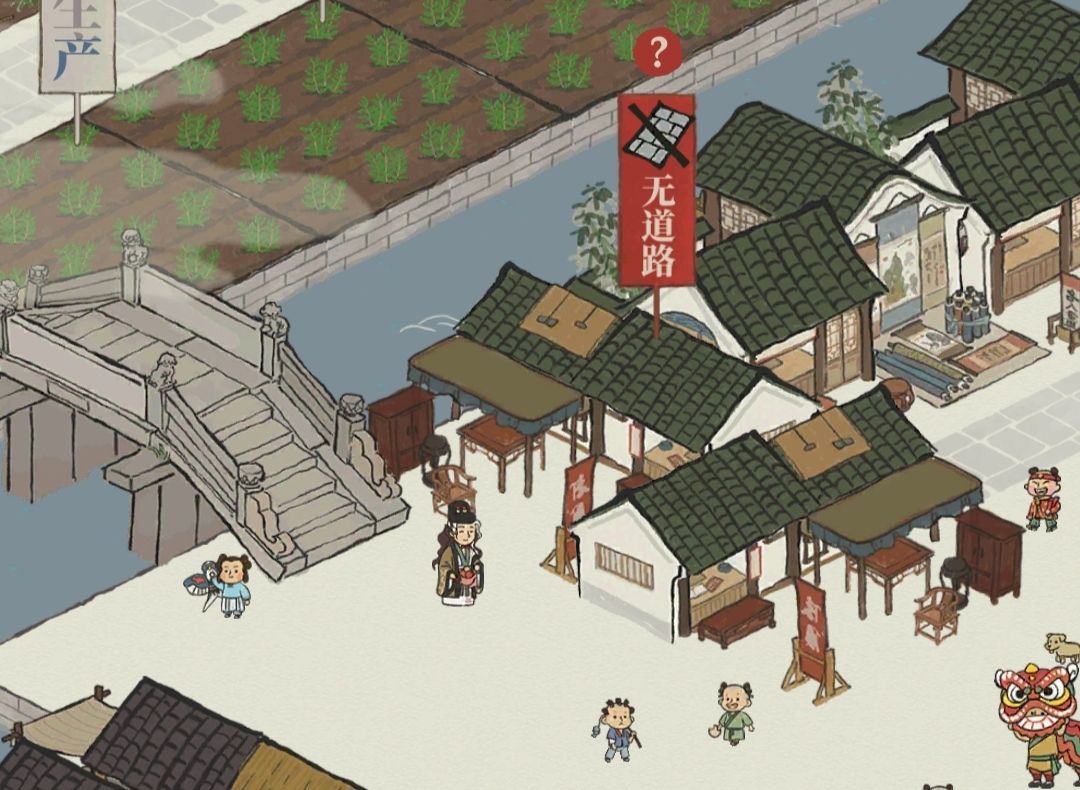 明明是一样的场景,可是桥下面有个路,完美解决了铺子没有道路的问题,完全不占地方,你大可以放别的东西节省了空间。