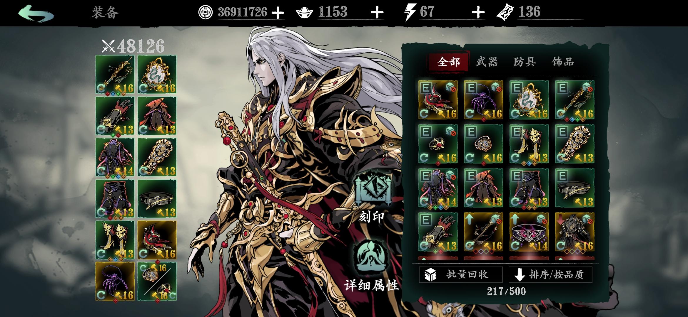 刻印 武器巨力+生命 鞋子爆伤 衣服武圣 裤子护甲